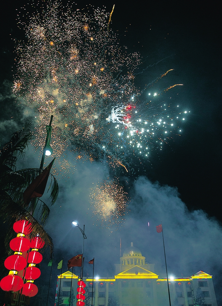 1月28日凌晨,三沙永兴岛烟花绽放迎接新年。本报记者 宋国强 摄
