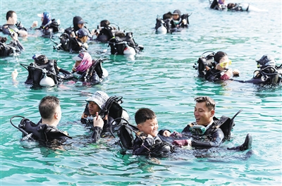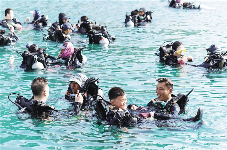 陵水分界洲岛旅游区,游客参加潜水体验。 本报记者 张杰 通讯员 童国强 摄