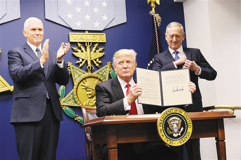 特朗普当天在五角大楼签署这一政令时说:“我们希望确保战士在海外抵抗的那些威胁不进入我们的国家。我们只想让那些支持我们国家、深爱我们人民的人进来。”
