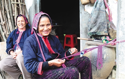 近日,白沙黎族自治县青松乡苗村,一位阿婆在农闲时节织锦,通过农村淘宝服务站销售,颇受欢迎。