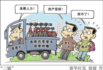 不少业内人士表示,仅仅这样简单收缴很可能导致“三输”:管理方浪费人力,单车公司资产受损,需要骑车的用户用不了。