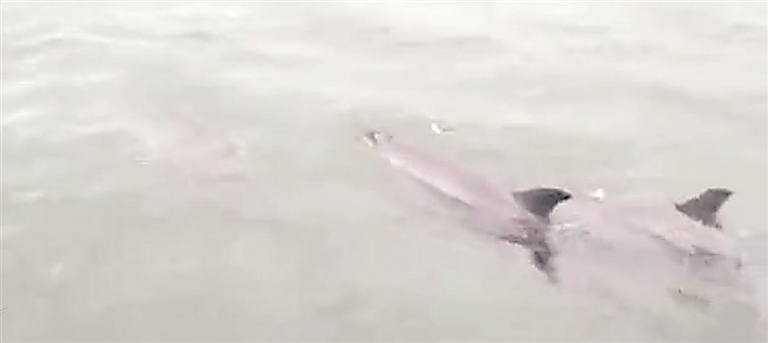 “起初我们不敢相信这里竟然有海豚,直到看到它们再三跳出海面,我们才兴奋地拿起手机把这珍贵的画面记录下来。”黄世秋说,自己在海边生活了几十年,见到海豚还是头一次。黄世秋说它们是来觅食的,因为在海豚经过的海面上,有一层层小虾米,海豚不停地跳出水面,去吃那些虾米。“那一幕真的太美了!”兴奋之下,黄世秋和朋友们发出了呼喊声。在湛蓝的海水中,3只海豚直到把海面上的小虾全部吃完,才渐渐沉入海中游走,整个过程约有10分钟。