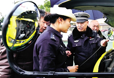 2月8日,上海徐汇公安分局交警支队民警在对逸夫小学的校车进行检查。 新学期开学在即,上海徐汇公安分局交警支队对全区中小学、幼儿园近300辆校车的车况、车载救生设备、驾驶员资格、行车路线等逐一检查审核,消除校车隐患,确保学生平安出行。 新华社发