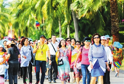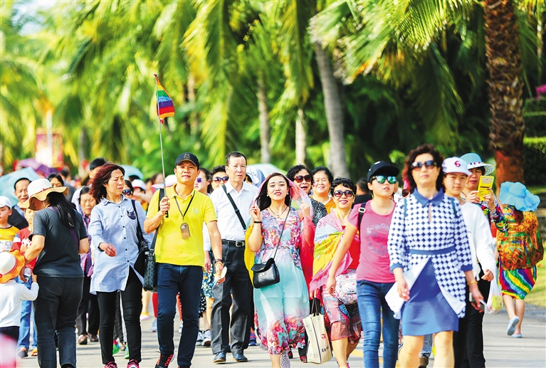 2月8日,众多游客在三亚南山景区游览。