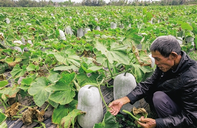 据介绍,该县今年冬瓜种植总面积达5475亩,其中盐尽村创富农民合作社总种植面积1354亩,冬瓜总产量达1500万斤。合作社采用土地入股分红的经营模式,目前共有社员26户,农户每亩地每年至少可获一万元的收入。此外,周边的村民还可到基地打工,每月收入3000元。