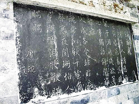 唐琬读后也依韵和之,情意凄绝:“世情薄,人情恶。雨送黄昏花易落。晓风干,泪痕残。欲笺心事,独语斜阑。难,难,难!人成各,今非昨。病魂常似秋千索。角声寒,夜阑珊。怕人寻问,咽泪装欢,瞒,瞒,瞒!”