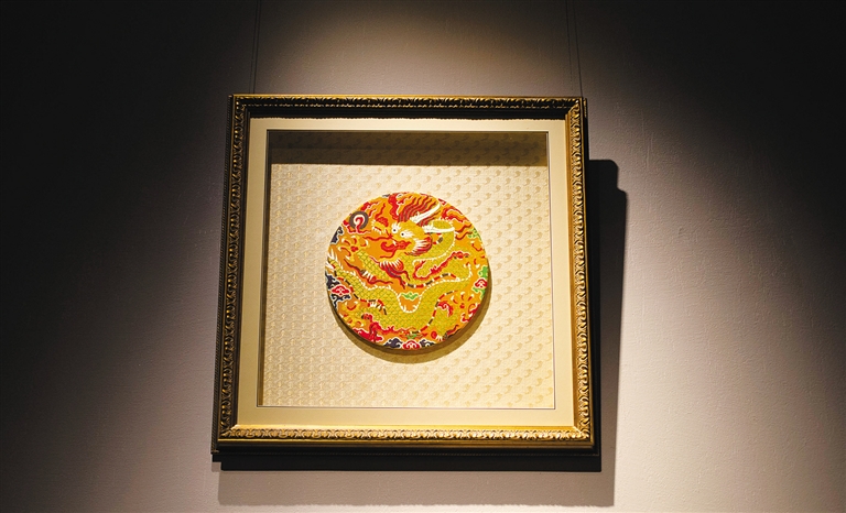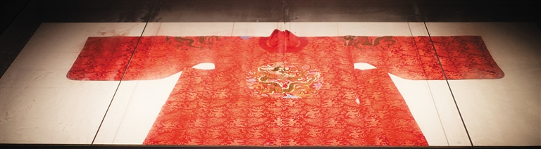 除了蟒袍,展品中还有一件清代的、织有九条龙的黄地暗花绸长袍,一朝天子的奢华与独一无二尽含其中。