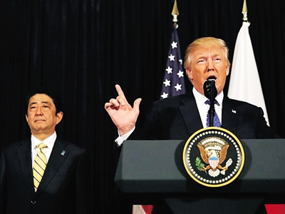 这次试射也发生在特朗普接待日本首相安倍晋三之时。之前,特朗普与安倍10日发表共同声明,把“抵御朝鲜导弹和核威胁”作为“重中之重”的事务。