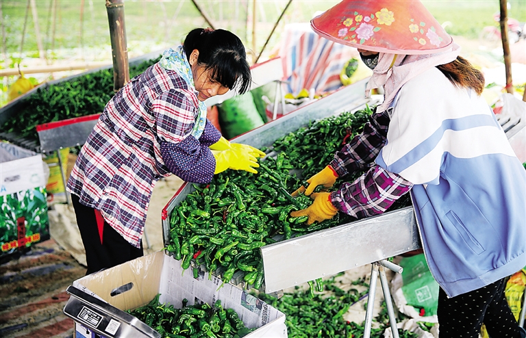 “以前家里的主要收入来源是丈夫打工收入和割胶,在这里采收辣椒,一天可收入130元,不但增加了家庭收入,工作也相对轻松。”海头镇红洋村村民李阿姨介绍。