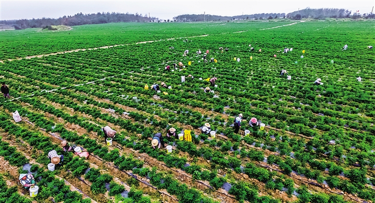 日前,在儋州海头镇村,村民们正在辣椒地里进行采摘装箱。羊廷进说,自己大学毕业后就一直从事农产品的生产和销售工作,近年来随着儋州市政府对当地农业产业的大力扶持,利好政策不断,便毅然回到儋州创业从事瓜菜种植,用自己的所学所长为家乡贡献一份力量。在儋州本地,像羊廷进一样被儋州良好的政策吸引回家乡创业的人员越来越多。
