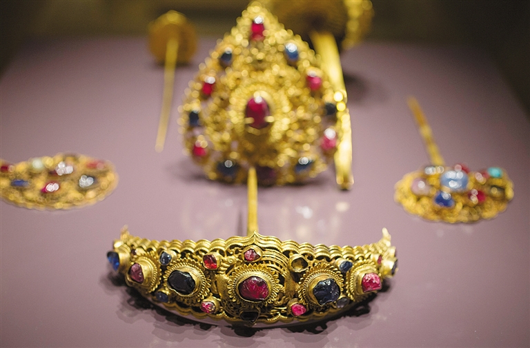 金镶玉、玉包金,自古以来国人对这两种材料的迷恋、对器物的审美与制造的工艺让它们密不可分。2017年新春,海南省博物馆精心策划推出的“金玉良缘”展,荟萃了一批来自江南的金器与来自南京博物院的玉器,再配上“一机难织两样锦——云锦和黎锦”展览,在椰城掀起观展热潮。
