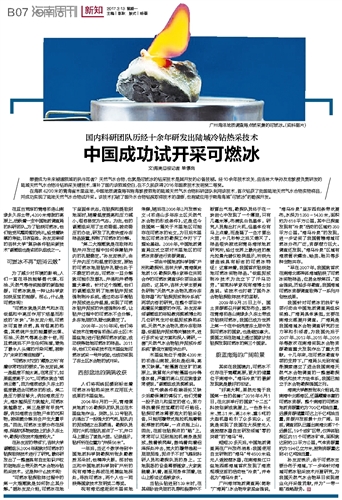 中国成功试开采可燃冰