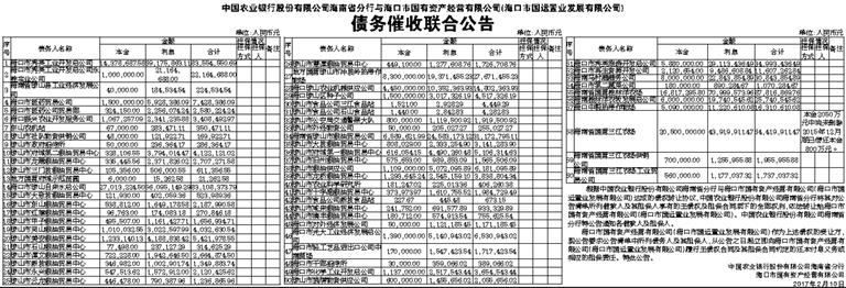 中国农业银行股份有限公司海南省分行与海口市国有资产经营有限公司(海口市国运置业发展有限公司)