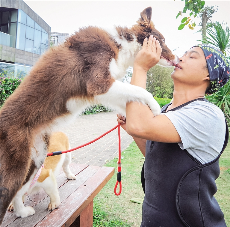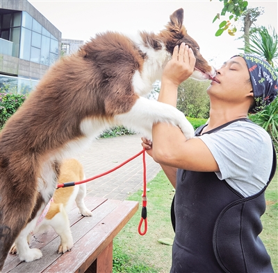 80后的薛壮是海南人,大学学的是计算机专业,毕业后一直从事IT行业,一次偶然的机会收养了流浪狗,狗就成了他的好伙伴。他和符振武最多的时候一起养了7条狗,很多养狗的邻居知道他可以帮着遛狗,找他遛狗的人也越来越多,相应的报酬也多了起来。