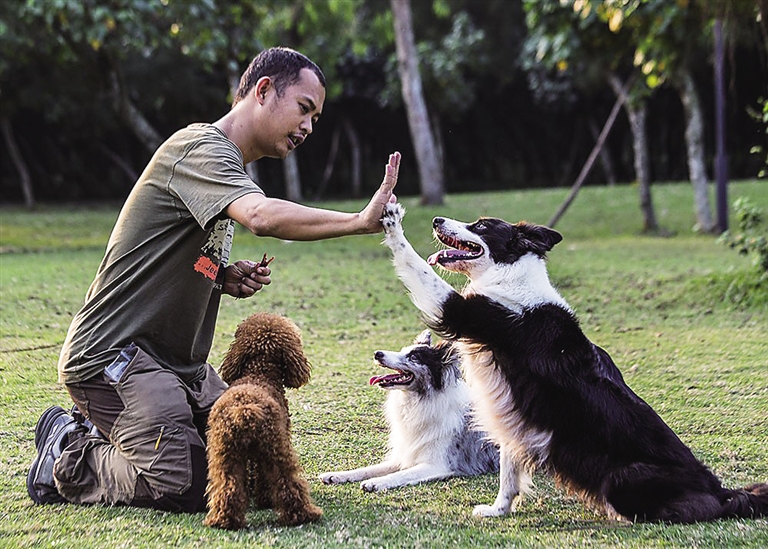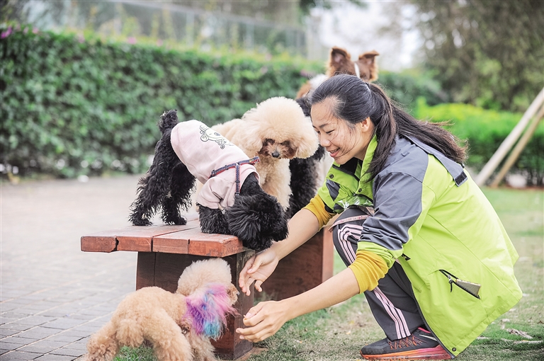 现在,找薛壮遛狗的人越来越多。有人说:“养了狗就要给它快乐,如果自己上班没时间,就把这活交给遛狗师。”