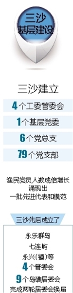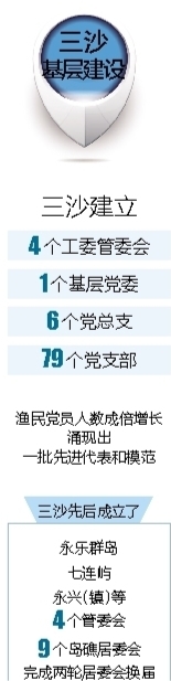 三沙设市4年多时间,针对以前交通不便,岛礁建设和生产生活条件落后,三沙岛礁上党建工作的基础十分薄弱等问题,积极推动资源下沉,用于保障基层党建工作的全面开展。