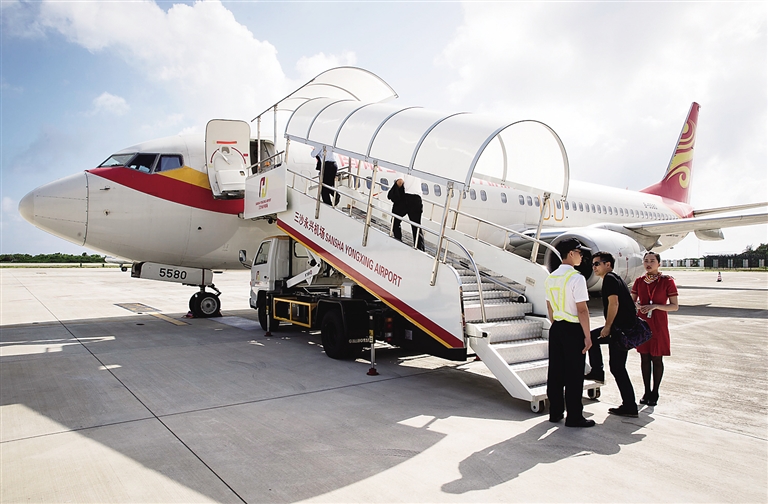 2016年12月22日,当一架从海口美兰国际机场起飞的民航客机降落三沙市永兴机场时,永兴岛至海口的航班正式通航,驻岛军警民难掩兴奋,他们的出行又多了一个选择,更便捷了。