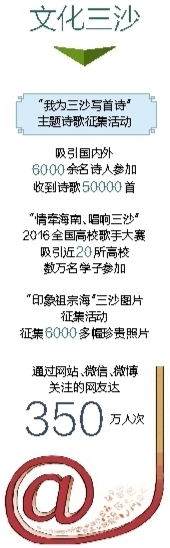 2016年,一个个“走出去”的文化活动,开始在国内引起强烈反响,面向全国的精彩的文化活动一个接着一个,也让越来越多的中国人感受和参与到三沙文化建设中来。