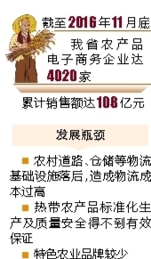 虽然近几年我省农业电子商务已取得较快发展,但物流成本过高、农产品种植技术水平低、特色农业品牌较少成为其发展瓶颈。