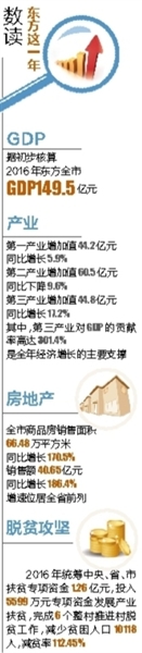 20个计划新开工项目全部开工,油气产业、旅游业等10个项目成功签约162亿元,60万吨柴油加氢项目顺利竣工投产,商品房库存去化期降至23个月……如果仅看统计报告,东方2016年的经济并不美丽,但从上面这些数字,我们可以看到东方发展的后劲。