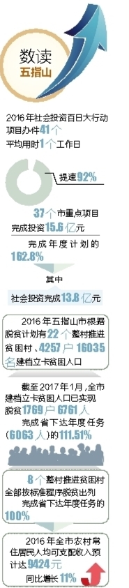 作为国家级贫困县,2016年五指山市根据脱贫计划有22个整村推进贫困村、4257户16035名建档立卡贫困人口,贫困发生率为28.2%,扶贫攻坚任务艰巨、责任重大。截至2017年1月,该市建档立卡贫困人口已实现脱贫1769户6761人,完成省下达年度任务(6063人)的111.51%;8个整村推进贫困村全部按标准程序脱贫出列,完成省下达年度任务的100%;2016年全市农村常住居民人均可支配收入预计达9424元,同比增长11%。