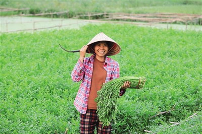 大约一个小时后,郑维英已采摘100多捆水芹抬到路边,交给正在等候的瓜菜商。