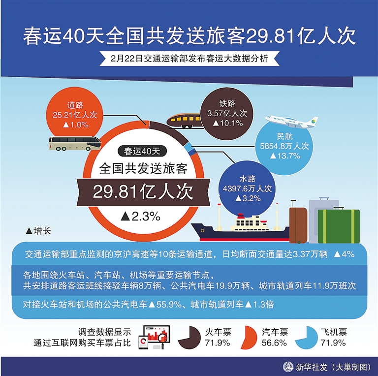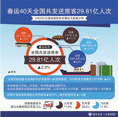 春运40天全国共发送旅客29.81亿人次