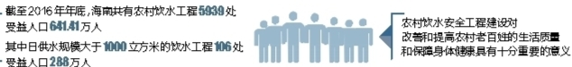 儋州代表团建议,建立省中心与市县中心二级农村饮水水质监测体系,其中,海南省水环境监测中心作为省中心;各市县疾病预防控制中心或取得国家计量认证42项参数的化验室合作成立市县农村饮水安全工程水质监测中心作为市县中心;每年对已建成农村安全饮水工程5939处进行一次或二次的检测,对106处日供水能力达1000立方米集中式供水工程每月进行一次检测。