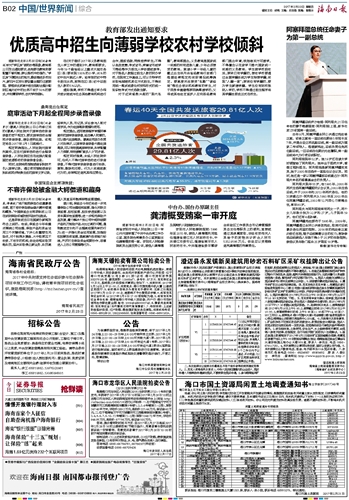 海南日报 中国/世界新闻综合 014 2017-02-231 2017年02月23日 星期四
