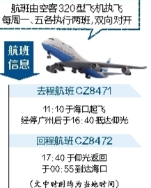 南航海南分公司总经理刘永泽介绍,作为“一带一路”基础建设之一,航空运输业的快速发展,将为海南与“一带一路”沿线国家架起“空中丝路”提供重要依托。自国家“一带一路”战略实施以来,南航先后在海南开通海口-首尔、三亚-大阪、海口-仰光3条海南始发国际航线,未来随着国际航空市场进一步回暖,南航还将开通更多的海南始发国际航线。