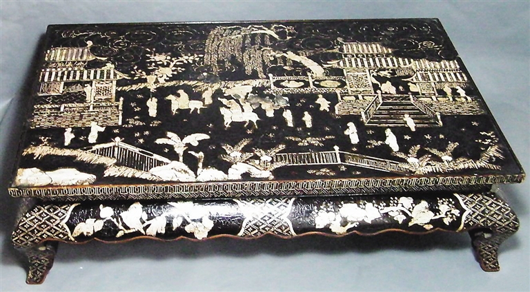 到了明代,朱棣设皇家漆器作坊果园厂,螺钿工艺也得以更上一层楼。漆工专著《髹饰录》提到:“螺钿古者厚而今者薄。”明代的螺钿制作,一改之前的敦厚结实,髹漆肥厚,样式变得更为轻薄,新颖雅致,纤巧精工。这些工艺技法,一直延续到了清代。尤其是乾隆皇帝,崇尚古物,宫廷的螺钿器皿,受到明代工艺的深刻影响,但又加入了一些时代的审美元素。如通过构图设计,以密集和疏旷的排列,营造出空间的呼应与和谐感,使图案画面生动,虚实得宜,从而令器物造型与螺钿装饰,达到水乳交融的境界。如今国家博物馆收藏的清代螺钿工艺品,就代表着这一时期的最高水准。