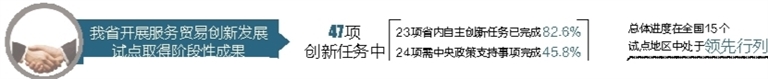 记者今天了解到,2016年2月我省开展服务贸易创新发展试点以来,试点工作取得阶段性成果。