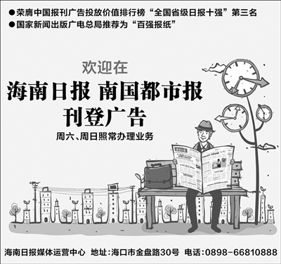 欢迎在海南日报 南国都市报刊登广告