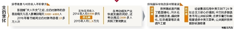 北仍村经验可在我省美丽乡村建设和全域旅游实践中予以推广。北仍村的发展并没有因为眼前取得的成绩而止步,相反,北仍村早已进入二期发展的规划阶段。届时,村子将增设自行车露营地、垂钓区、烧烤区、水果采摘基地等新项目,并结合当地旅游资源,引入重点高等教育机构开设分校,尽可能多地为各类游客提供不同的旅游体验,也可最大限度地盘活当地村民的就业。北仍村的“火”将带动周边旅游业的发展,夫人外交活动的影响力仍在持续发酵。