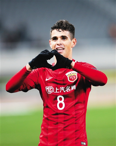 2月28日晚,在亚冠联赛小组赛F组第二轮比赛中,上海上港队主场以5:1大胜西悉尼流浪者队,取得两连胜。图为上港外援奥斯卡进球后庆祝。新华社发