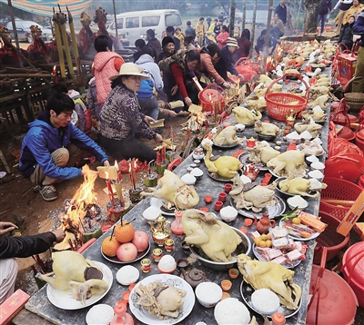当然,吃公期,最突出的是“吃”字。在这一点上,文昌的公期最具特色,重在吃,而不像其他各县一样“闹”出很多花样。且看正月十四文昌市东路镇葫芦村公期里的菜单:首盘全家福、红炖羊肉、白斩文昌鸡、豉汁蒸白鳝、爆炒肚尖、红炖五花肉、酸菜炒粉丝、清炒菜芯、紫菜蛋花汤、八宝饭……光看名字就令人垂涎欲滴,而且乡土味十足。