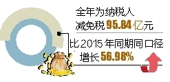 统计数据显示,去年5月1日起,我省全面实施营改增,建筑业、房地产业、金融业、生活服务业四大行业20.59万户纳税人顺利实现税制转换,增值税收入79.7亿元,较同期营业税减收17.1亿元,同比下降17.6%,营改增后(下半年)四大行业增值税总体税负比上半年平均税负降低3.5个百分点。截至2016年底,四大试点行业累计净减税7.9亿元,户均减税3836元,实现了“所有行业税负只减不增”的目标。