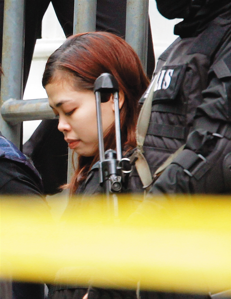 3月1日,在马来西亚雪邦,印尼籍嫌疑人西蒂·艾莎被警察押送离开法院。 马来西亚检方3月1日正式以谋杀罪起诉涉嫌在吉隆坡国际机场杀害一名朝鲜男子的两名女子。一旦罪名成立,这两名分别来自印度尼西亚和越南的嫌疑人将面临死刑判决。新华社/美联
