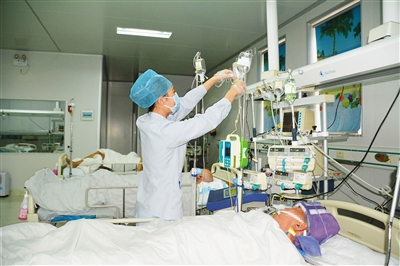 “ICU病房的建立,让我们能从死神手下‘抢’病人了!”屯昌县人民医院ICU科主任王绥标还记得,ICU病房刚建好不久,76岁的王大爷就因心肌梗塞被送入ICU。医护人员立即为其进行心电监护,气管插管和呼吸机辅助呼吸等抢救治疗,终于在死神面前“抢”回了王大爷的生命。
