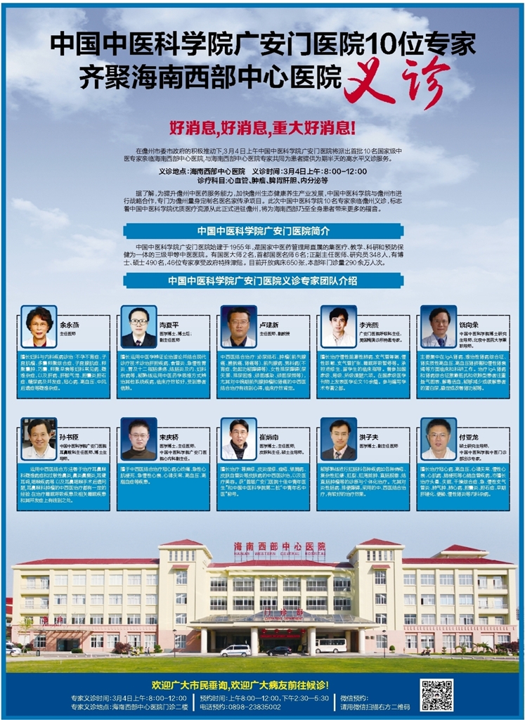 中国中医科学院广安门医院10位专家 齐聚海南西部中心医院义诊