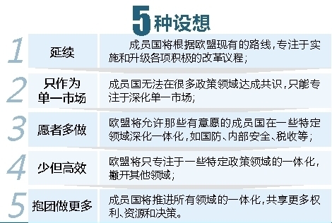 容克在白皮书前言中说,这些设想将供欧洲议会、成员国议会、地方政府和公民团体讨论。他将考虑这些讨论结果,并在今年9月的“盟情咨文”中提出他个人对于欧盟未来的看法。他希望这些讨论将有助于欧洲理事会在今年底给出初步结论,并在2019年6月欧洲议会选举前拿出行动方案。