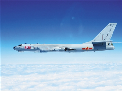 3月2日,在西太平洋某海域,一架中国海军航空兵轰炸机参加舰机实兵对抗演练。 当日,中国海军航空兵轰炸机、歼击机、警戒机等多型多架飞机,经宫古海峡赴西太平洋某海域,与航经这一海域的海军远海训练舰艇编队进行了实兵对抗演练。 新华社发(陈小勇摄)