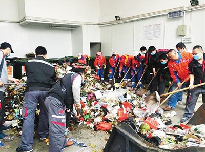 当时,京兰公司工作人员判断,这位市民及家人的护照有可能已随生活垃圾装进垃圾压缩车内,于是立即通知司机将垃圾清运车开到万华路垃圾中转站,将车厢内的垃圾全部倾倒出来。多名环卫工作人员戴上口罩,拿着铁锹,一边翻检垃圾,一边寻找护照(右图,京兰公司提供)。