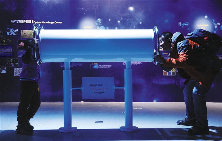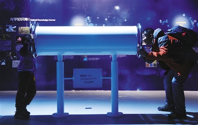 3月2日,一对父子在长春中国光学科学技术馆体验视光万花筒。 长春中国光学科学技术馆近日迎来全面试运行百日,累计接待游客超过十万人次。 长春中国光学科学技术馆是我国唯一的国家级光学专业科技馆,展馆以“观察光的现象、探索光的本质、发展光学技术、回顾光学历史、展望光学未来”为逻辑与展示动线,通过科学性、知识性、趣味性相结合的展览内容和参与互动的形式,由浅入深地揭示光学原理及广泛的光学技术应用。 新华社记者 林宏 摄