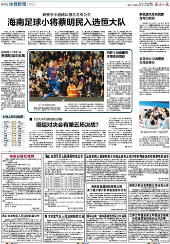 海南日报 体育新闻综合 013 2017-03-031 2017年03月03日 星期五