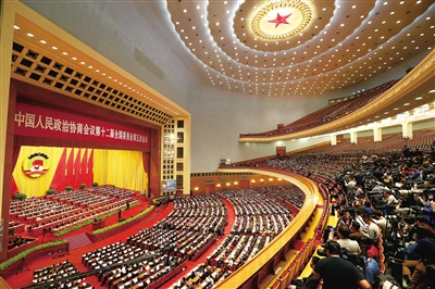 俞正声代表政协第十二届全国委员会常务委员会作工作报告。