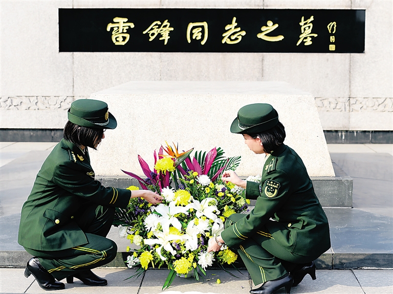3月4日,在抚顺雷锋纪念馆,辽宁边防总队沈阳边防检查站官兵向雷锋墓敬献花篮。 学雷锋纪念日前夕,辽宁抚顺雷锋纪念馆迎来大批参观者。社会各界人士到这里参观,缅怀雷锋同志,学习雷锋精神。