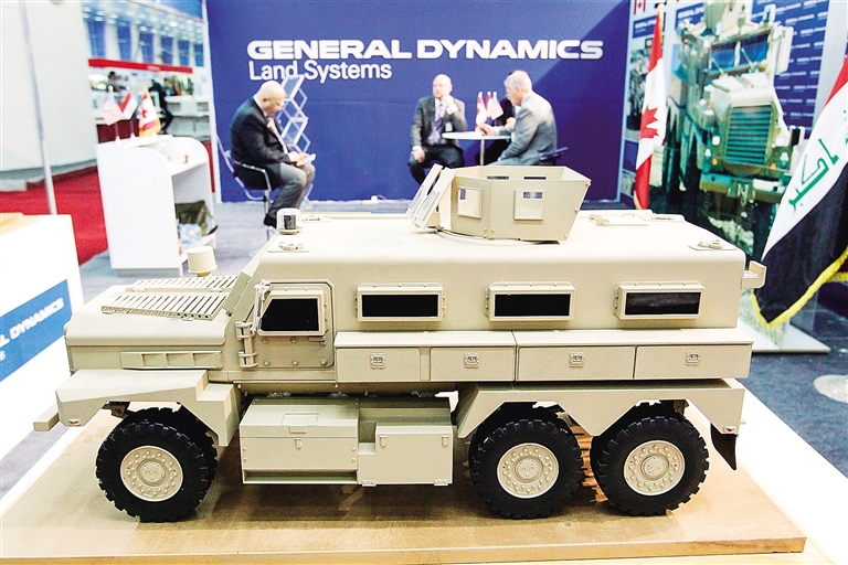 3月5日,在伊拉克首都巴格达,第六届伊拉克国际安全防务展上展出装甲车。 伊拉克国际安全防务展每年举行一次,是由伊拉克政府主办的以安全防务为主题的专业性国际展会。 新华社/法新