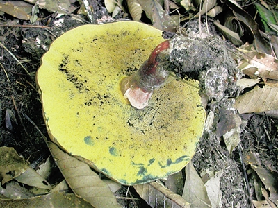 同样具有色彩特点的,还有中华金孢牛肝菌和暗褐金孢牛肝菌。