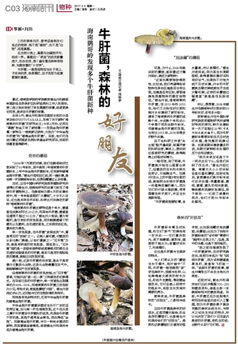 去年9月,曾念开和蒋帅在国际主流的分类学杂志《PHYTOTAXA》上,发表了关于新种“海南黄肉牛肝菌”的研究论文;今年2月份,这两位“真菌”粉丝又有了新惊喜——发现金孢牛肝菌属一新种及一海南新记录种,分别为“中华金孢牛肝菌”和“暗褐金孢牛肝菌”。目前,他们仍在进行着这项国家自然科学基金研究项目,后面的惊喜更值得期待。